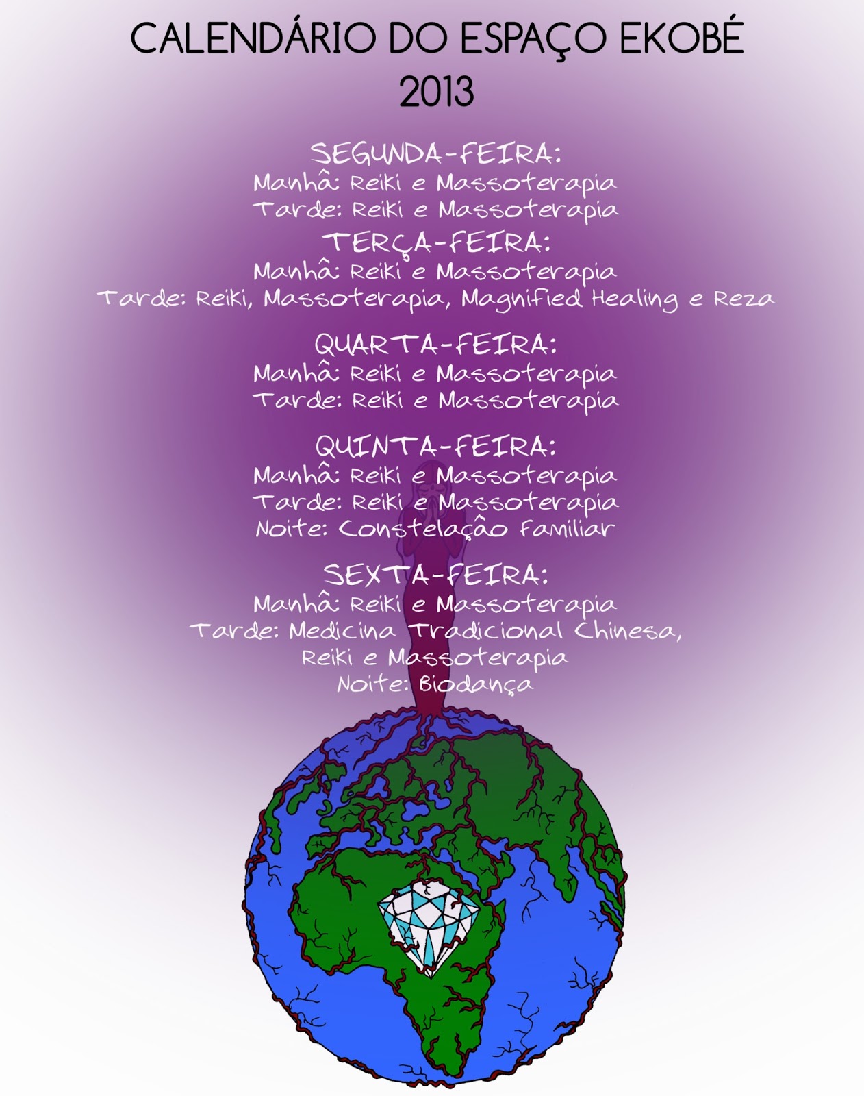 representado a principal singularidade da atuação do Espaço Ekobé que mantém um calendário que inclui massoterapia, reiki, rezas, entre outras, que